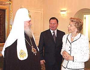 Предстоятель Русской Православной Церкви вручил г-же Элен Д`Анкос знак премии «За выдающуюся деятельность по укреплению единства православных народов»